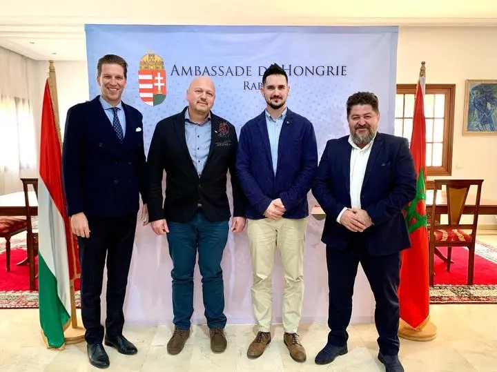 A képen: Tromler Miklós nagykövet, Gunyhó Balázs, Csuvár Alex R-Tec Automatisation Sarl. ügyvezetője és Joszkin János Magyarország külgazdasági attaséja Rabatban